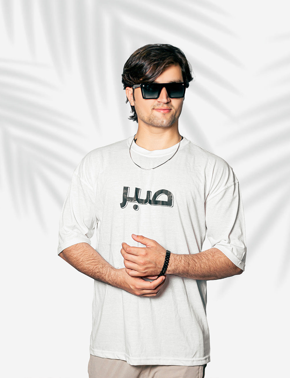 The SABAR Oversized T-Shirt by HAMRAH WEAR is a bold expression of calm strength, blending minimalist Urdu typography with powerful artistic storytelling on the back.